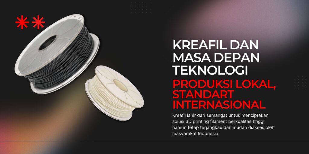 Kreafil lahir dari semangat untuk menciptakan solusi 3D printing filament berkualitas tinggi, namun tetap terjangkau dan mudah diakses oleh masyarakat Indonesia. Sebagai brand yang tumbuh dari tangan para pelaku industri dalam negeri, Kreafil mengusung prinsip “Produksi Lokal, Standar Internasional”. Setiap gulungan filament yang keluar dari pabriknya tidak hanya membawa nilai fungsional, tapi juga membawa identitas dan kebanggaan bangsa.