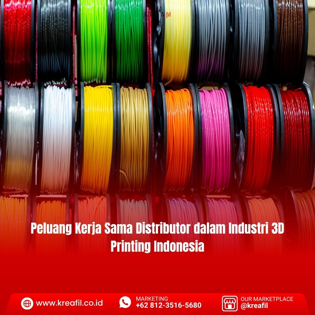 Untuk Anda yang ingin membuka peluang kerja sama distribusi di industri 3D printing, bermitra dengan produsen lokal yang stabil adalah langkah strategis. Kreafil, sebagai produsen filament 3D printing Indonesia, membuka peluang kolaborasi untuk distributor yang ingin tumbuh bersama dalam mendukung perkembangan industri 3D printing nasional.